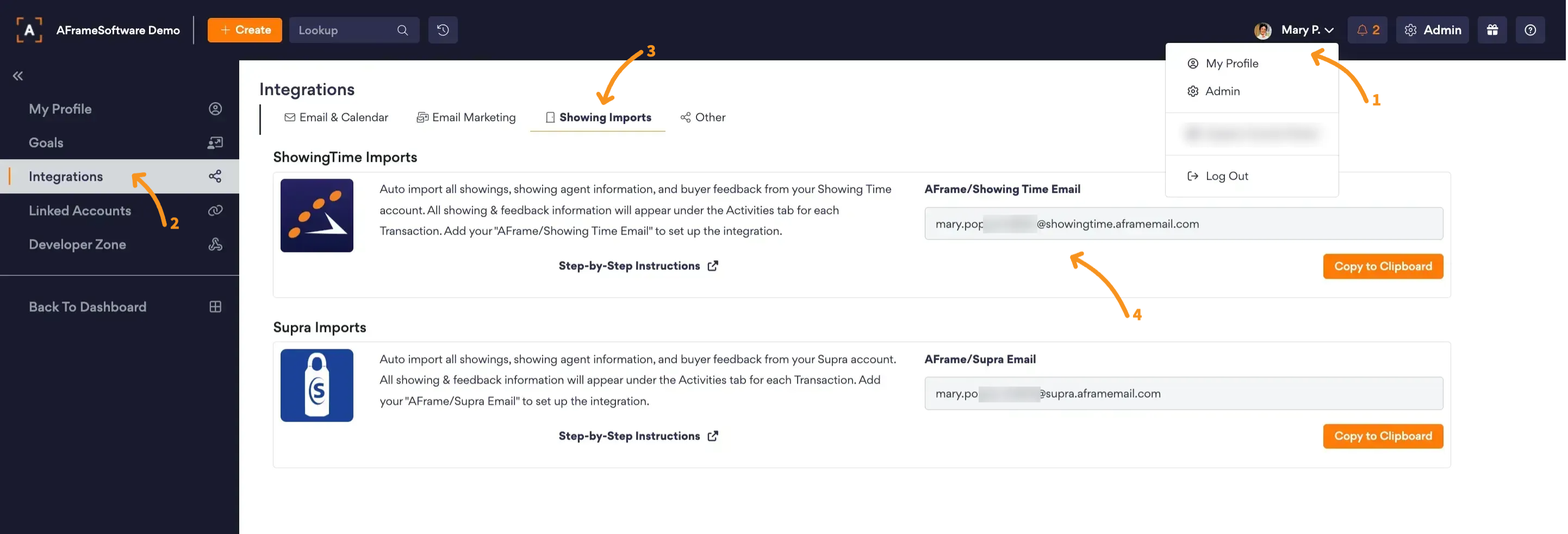 - Copy your provided AFrame/ShowingTime Email from your AFrame Account.