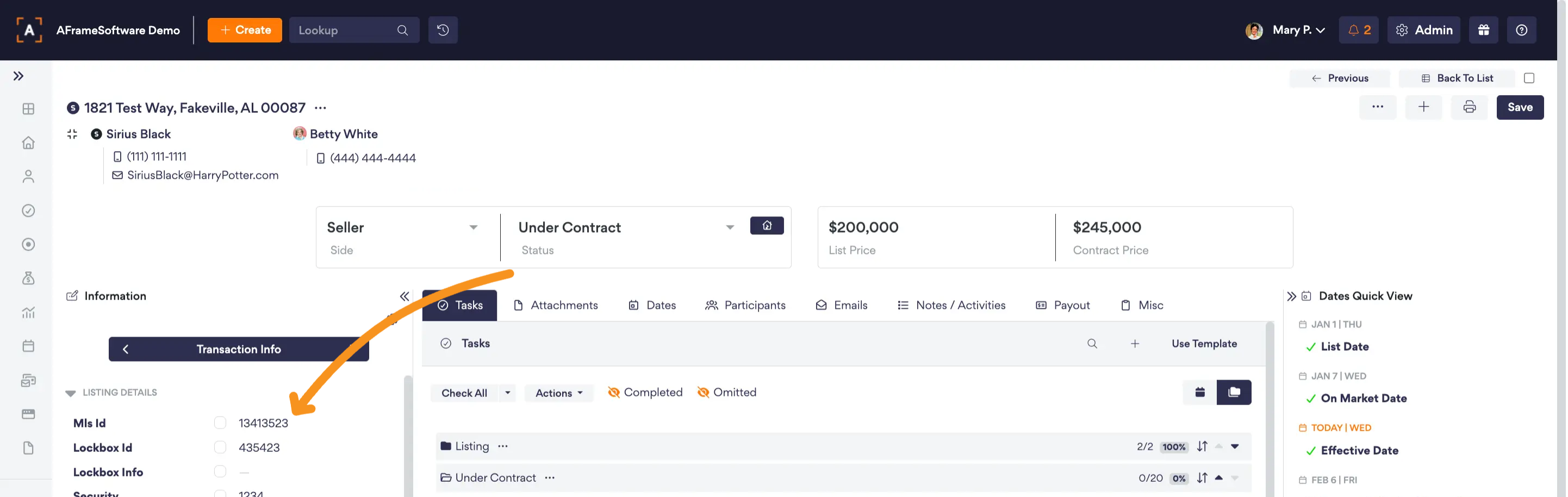 Each AFrame transaction needs the correct MLS ID entered in AFrame's MLS ID field in the information sidebar. This is needed for AFrame to find the exact transaction in your Team Account when any showing information is received.