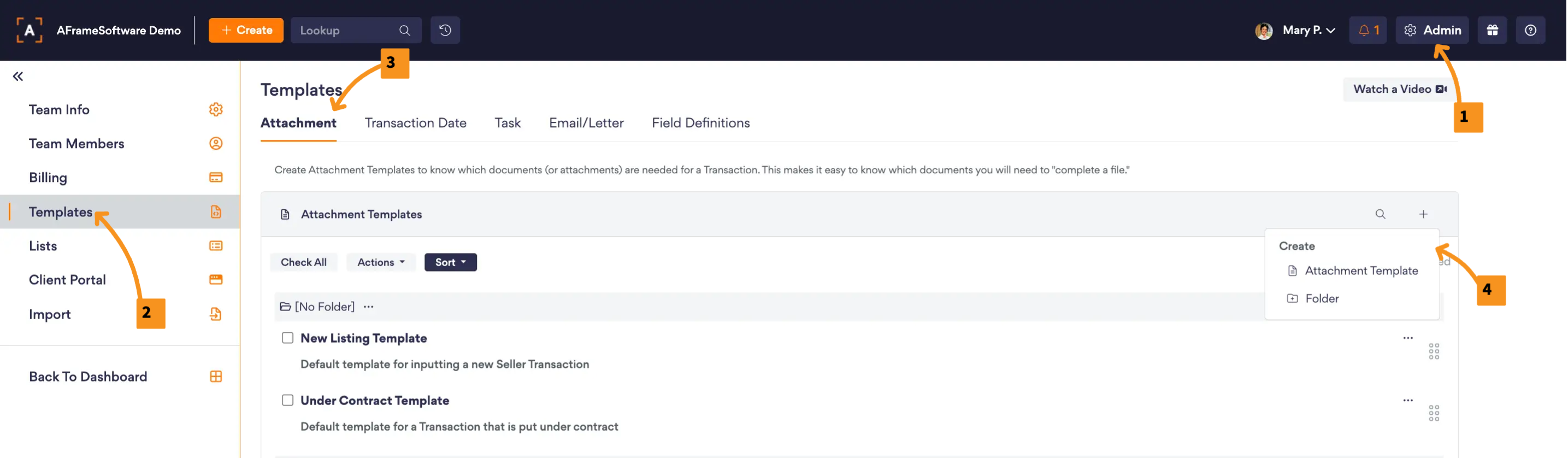 Open in AFrame: Admin → Templates → Attachment Template