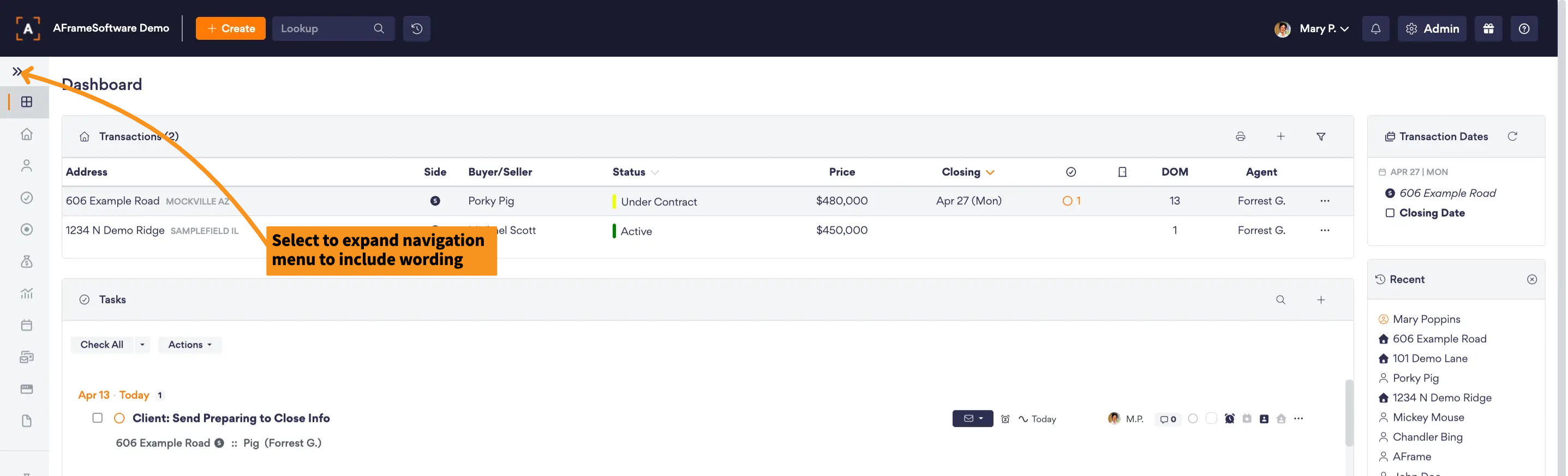 This is due to the condensing of the left sidebar giving you more "real estate" of your screen for the screen you are working within at the time. AFrame will remember your last setting, keeping the navigation menu condensed or expanded. Click the >> to expand the navigation menu again to view the wording with the icons.