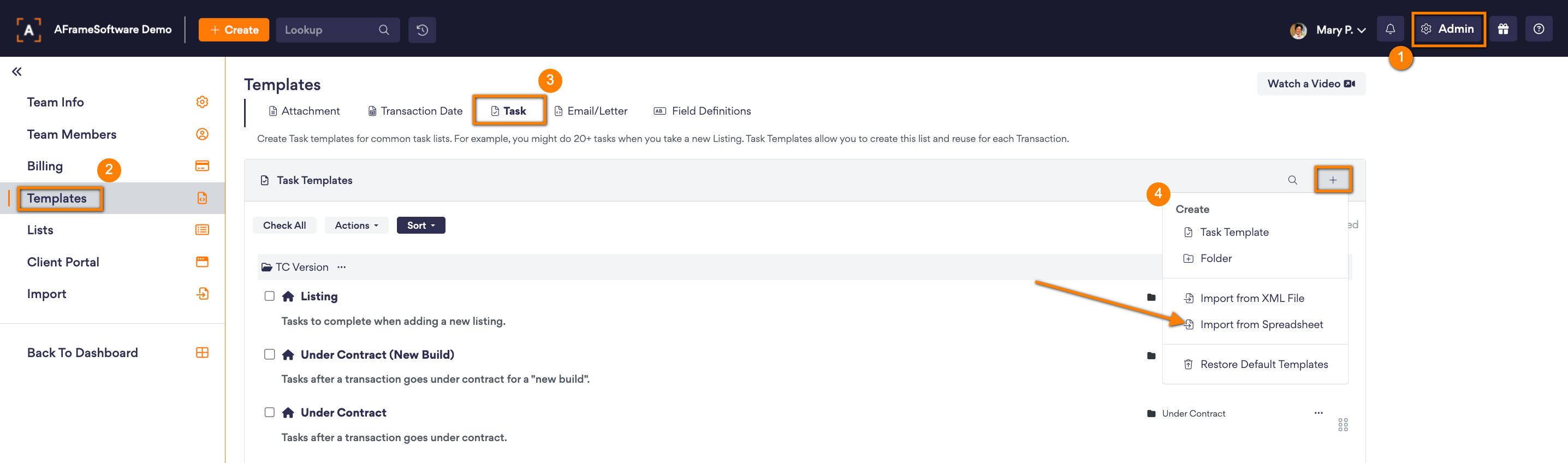 Importing previously created task lists into AFrame is easy. By transferring the data to our task import template, you can seamlessly bring your existing tasks into the AFrame platform. In this article, it will walk you through how to import task templates into your account.